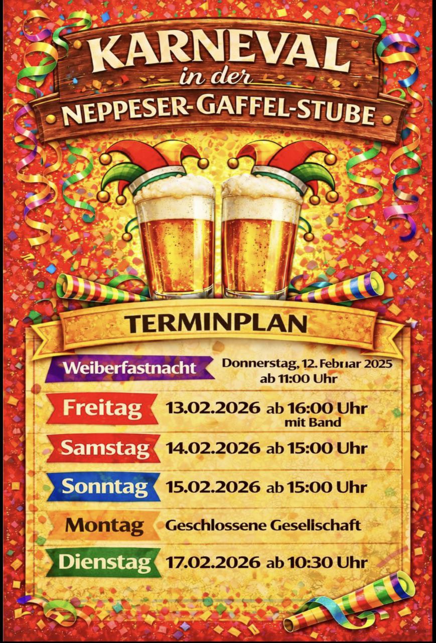 am Totensonntag, den 23. November 2025, bleibt unsere Neppeser-Gaffel-Stube geschlossen.